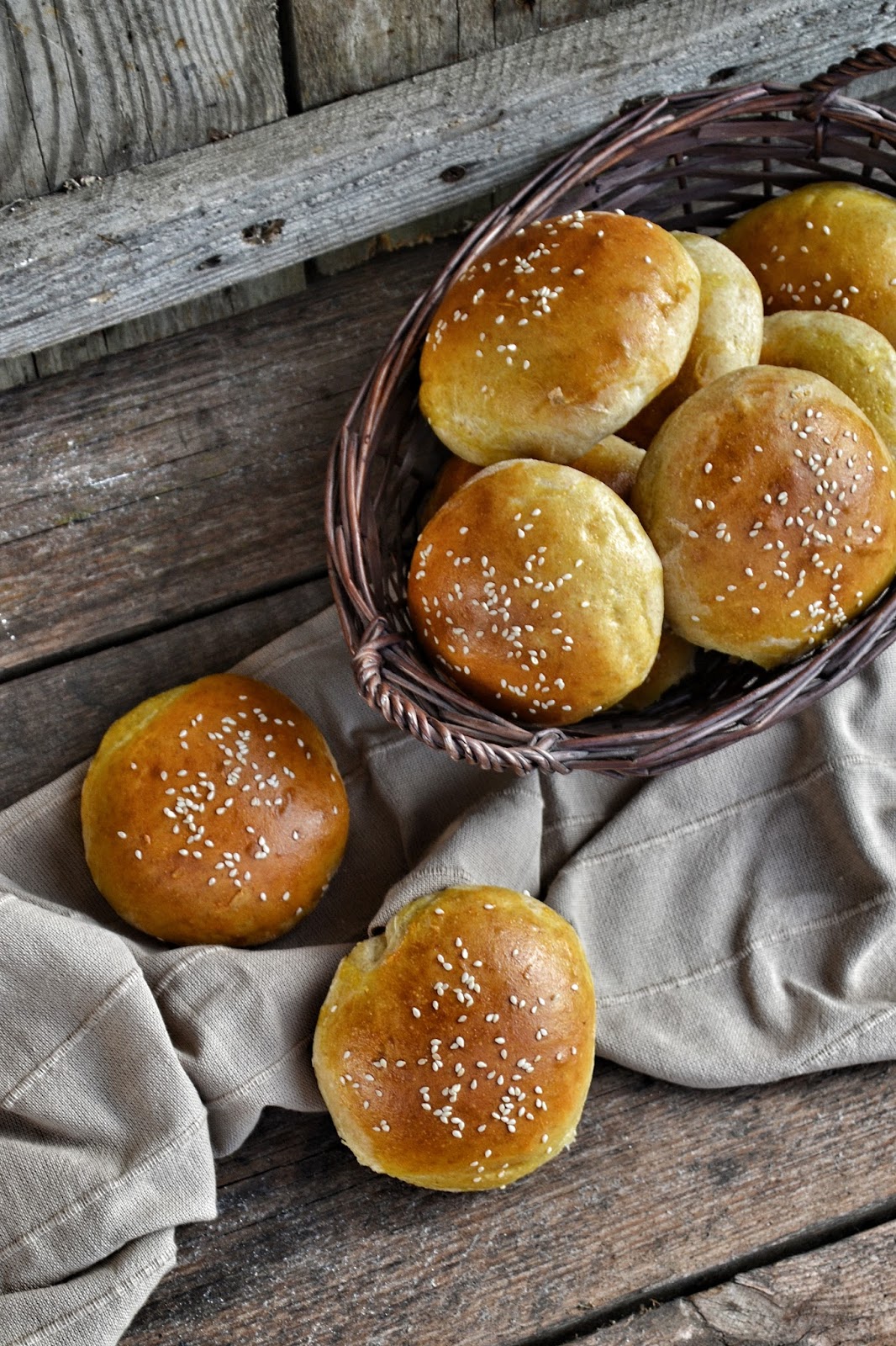 Nie cierpię bułek do hamburgerów ze sklepu. Są sztucznie nadmuchane i słodkie(!). Od razu po ich zjedzeniu czuję że puchnę jak ta bułka. Bułki do hamburgerów i nie tylko piekę sama. Dziś postanowiłam pokombinować z mąką i dodałam pełnoziarnistą orkiszową. Wyszły pyszne.