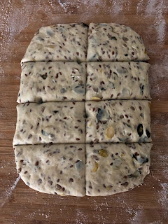 Pocięte bułki przełożyć na lachę wyłożoną papierem do pieczenia i odstawić w ciepłe miejsce do wyrośnięcia na ok 40-50 min.