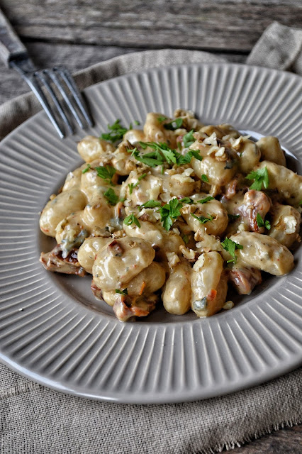 Gnocchi bezglutenowe w sosie z sera niebieskiego z suszonymi pomidorami