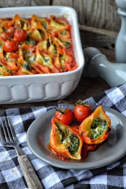 Makaronowe muszle ze szpinakiem i ricotta