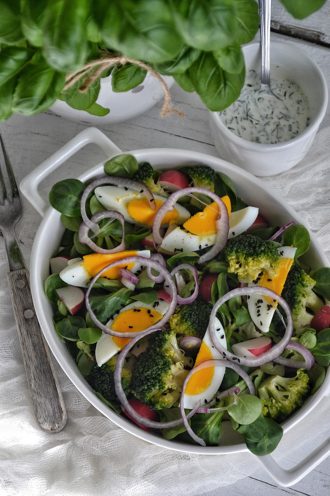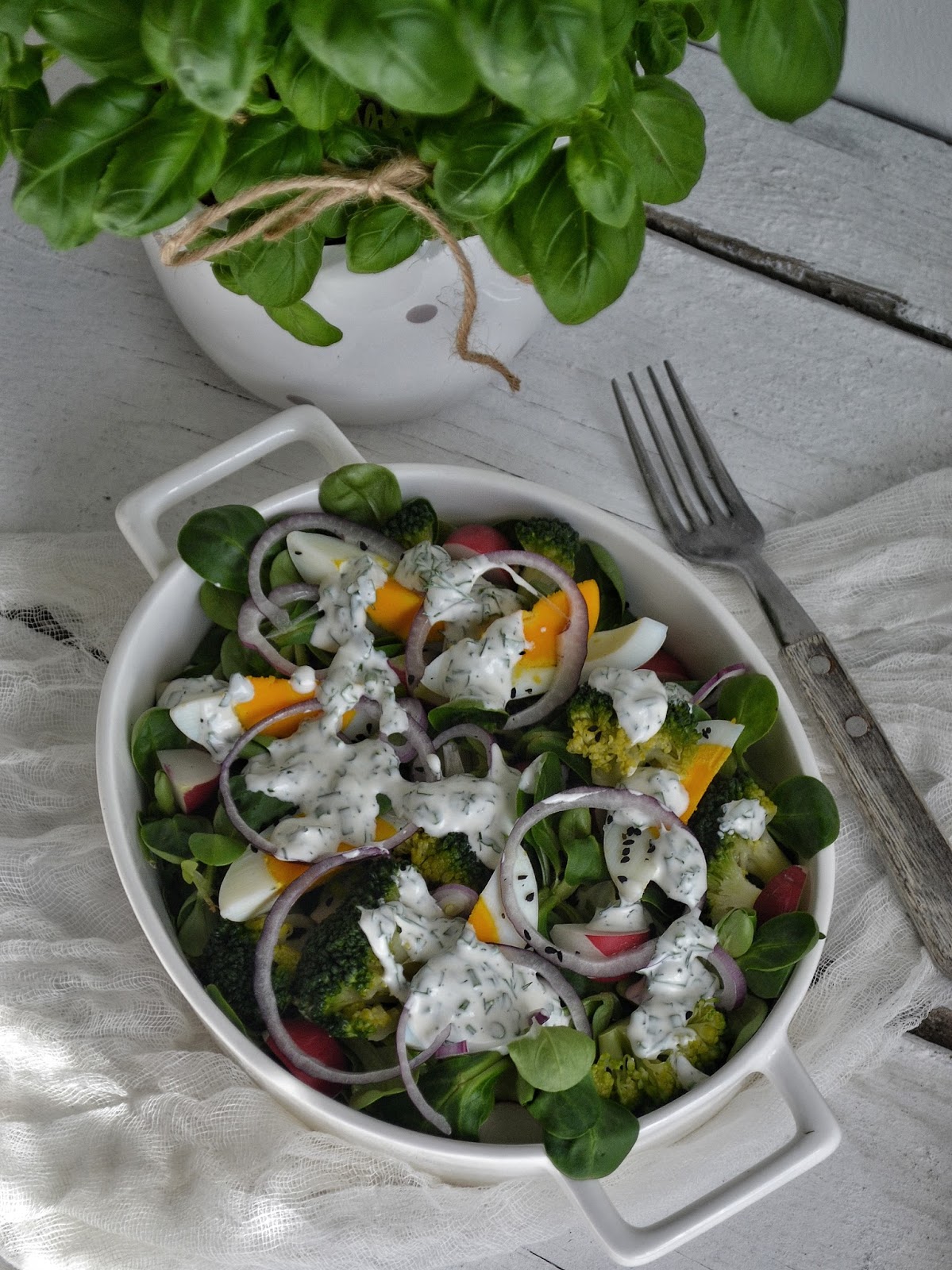 Zbliża się Wielkanoc, co za tym idzie pisanki które będziemy nieść do święcenia. Zawsze zastanawiam się do czego użyć jajka które poświęcimy. Daję do żurku i oczywiście do sałatki. W połączeniu z sosem jogurtowo- ziołowym jest idealne danie na wielkanocny stół.