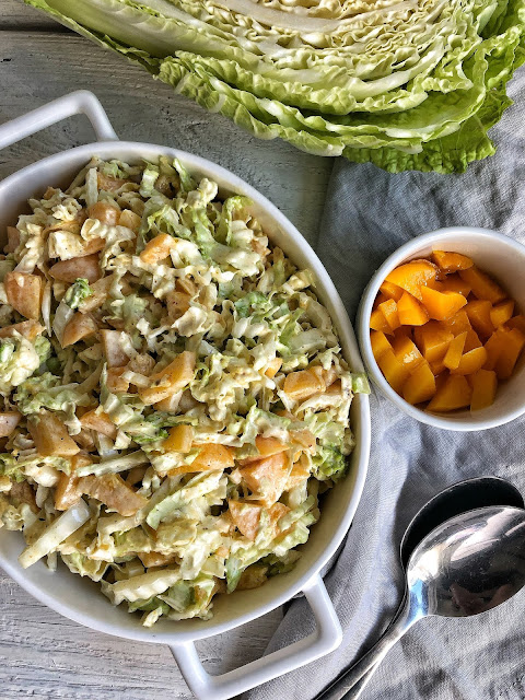 Ta sałatka z aromatycznym sosem z pewnością znajdzie wielu amatorów. Kapusta pekińska, słodkie brzoskwinie oraz sos z dodatkiem przyprawy curry. Uwielbiamy ją.!