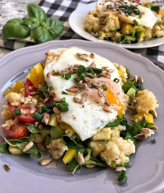 Sałatka z kaszą jaglaną i sadzonym jajkiem