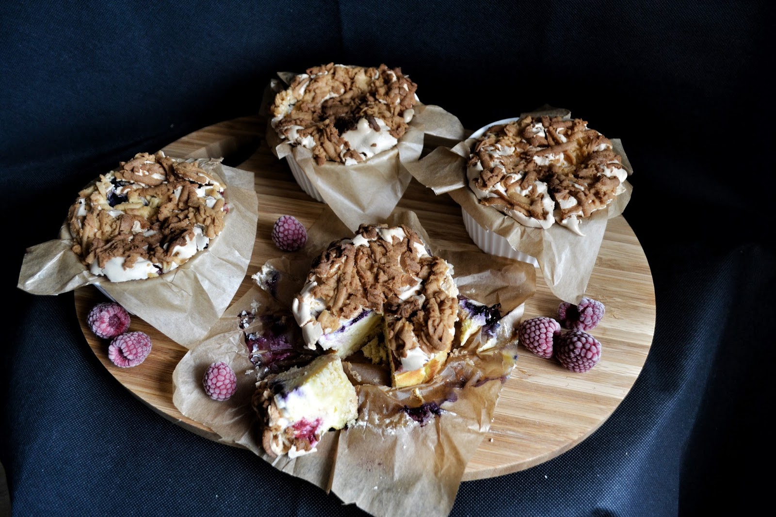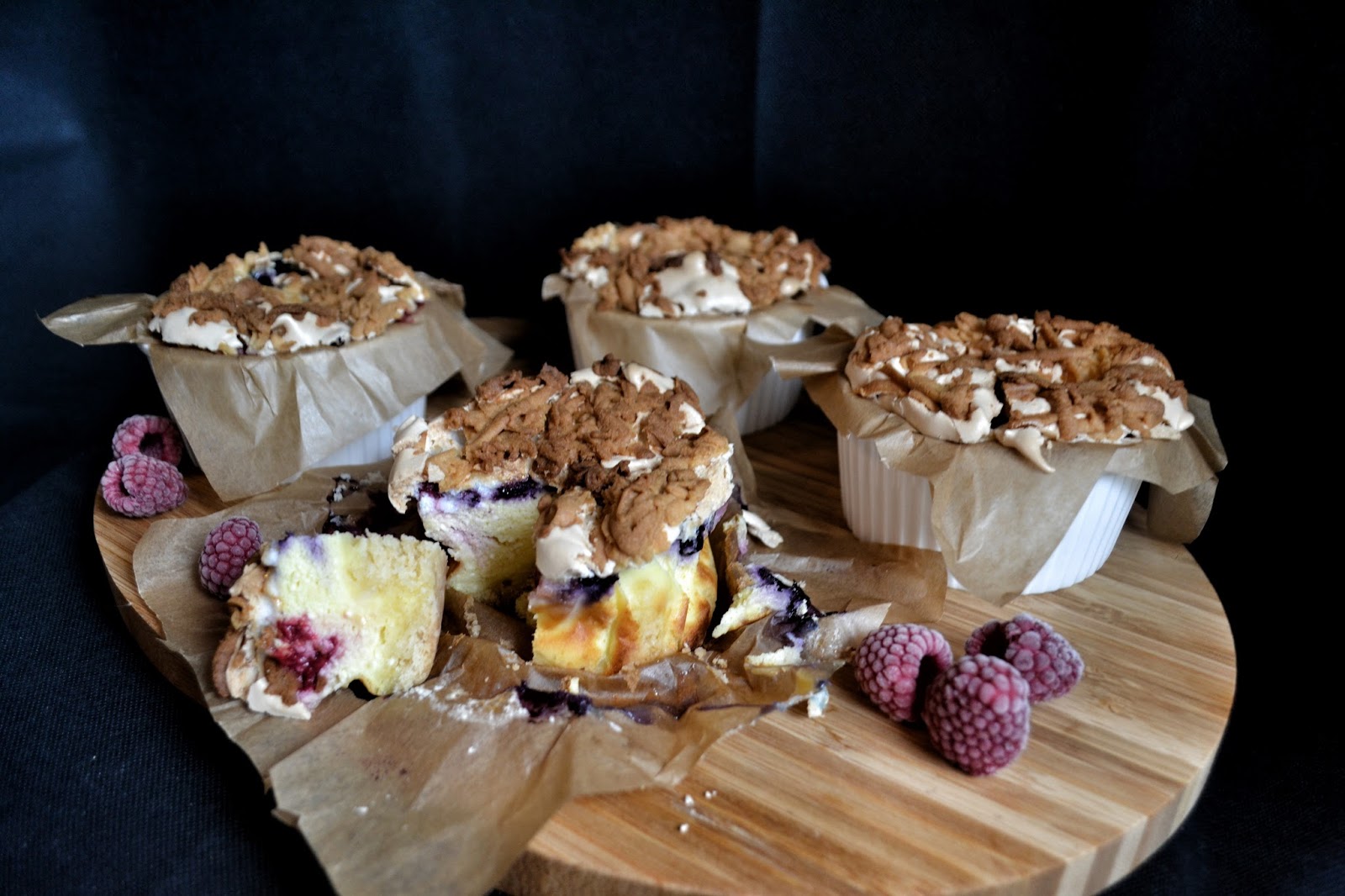 Serniczki w kokilkach z owocami leśnym pod podwójną pierzynką