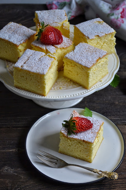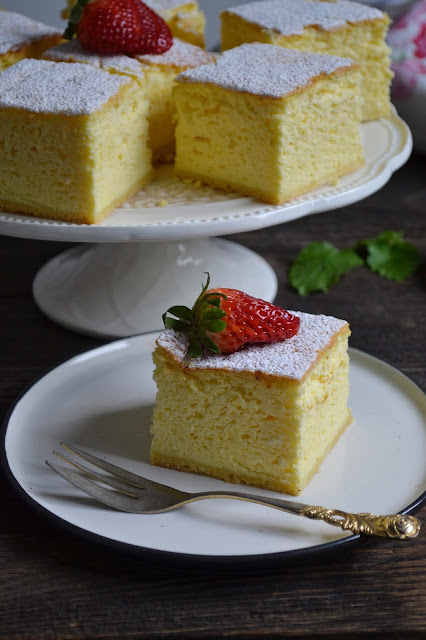 Sernik jest lekki i delikatny. Zawiera bitą śmietanę dzięki czemu ma smak bardzo śmietankowy. Nie jest to sernik dla fanów ciężkich i zbitych ciast. Ten jest aksamitny, niezbyt słodki… po prostu puch.