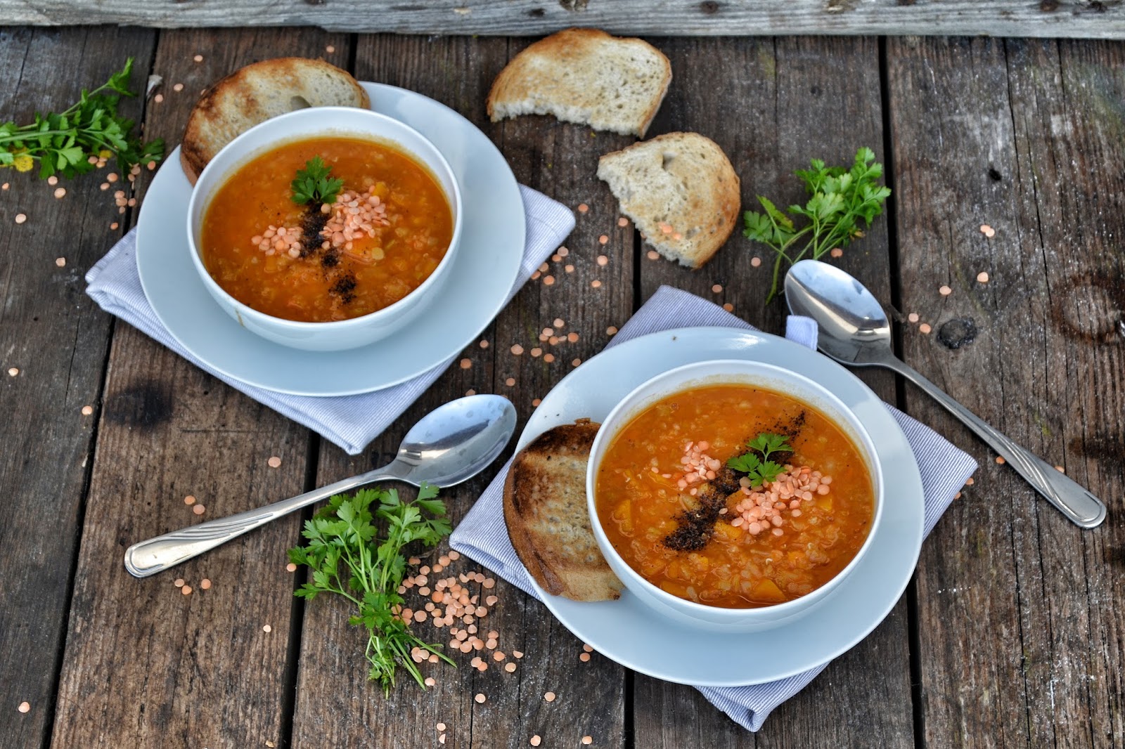 Sezon na dynię w pełni, ale mnie krem już się przejadł, więc szukam nowego smaku. Połączenie dyni i soczewicy jest idealne. Zupa jest sycąca i pełna witamin. Czerwona soczewica jest ogromnym źródłem białka.