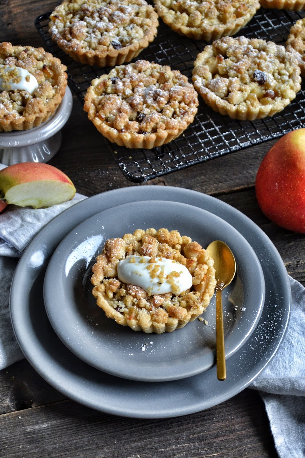Cudownie wilgotne, maślane tarty z aromatycznymi jabłkami. Coś obłędnie pysznego, można je jeść i jeść… Zaletą tych tart jest to że spód i ciasto robimy z jednego ciasta.